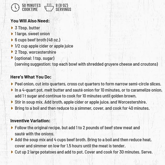 I prepared this soup yesterday … I also addedMy own beef stock and meat… I also added 3 large sliced onions which was more than what was recommended…10 people had this soup last night and everyone loved it …Before you start make sure you have the extra ingredients on hand …As I didn’t and needed to place a grocery orderAnd have some items delivered while preparing what I did have on hand !!