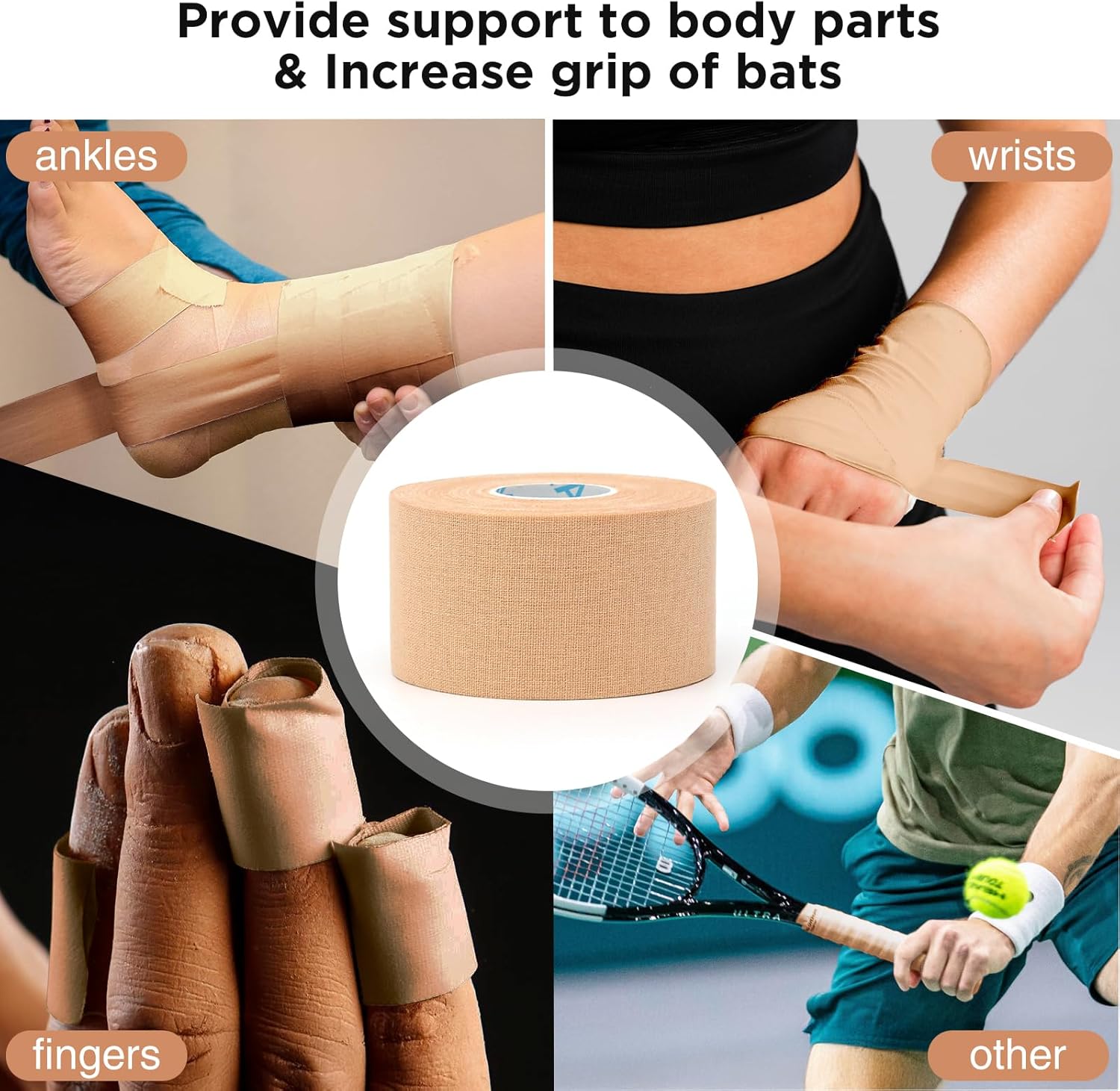 I've been using athletic tape for years as a coach and parent of a young athlete, and this tape definitely surprised me in a good way. It is the standard size for most athletic tapes.It’s strong, easy to tear by hand, and doesn’t leave behind a huge sticky mess like some of the other brands I've used. The grip is solid for ankles, wrists, and even fingers, and it holds up well during practice and games.The fact that it comes in a 4-pack makes it a great value, and I like that it’s not overly rigid.It has a little give but still provides support.Only downside is the rolls seem slightly thinner than some of the name brands, so I go through them a bit faster. Also, the white color isn’t super bright, but that’s a minor thing.Overall, it’s a solid choice for athletes, trainers, or anyone who needs reliable tape on hand. I’ll definitely be reordering. Great price for athletic tape that functions really well!
